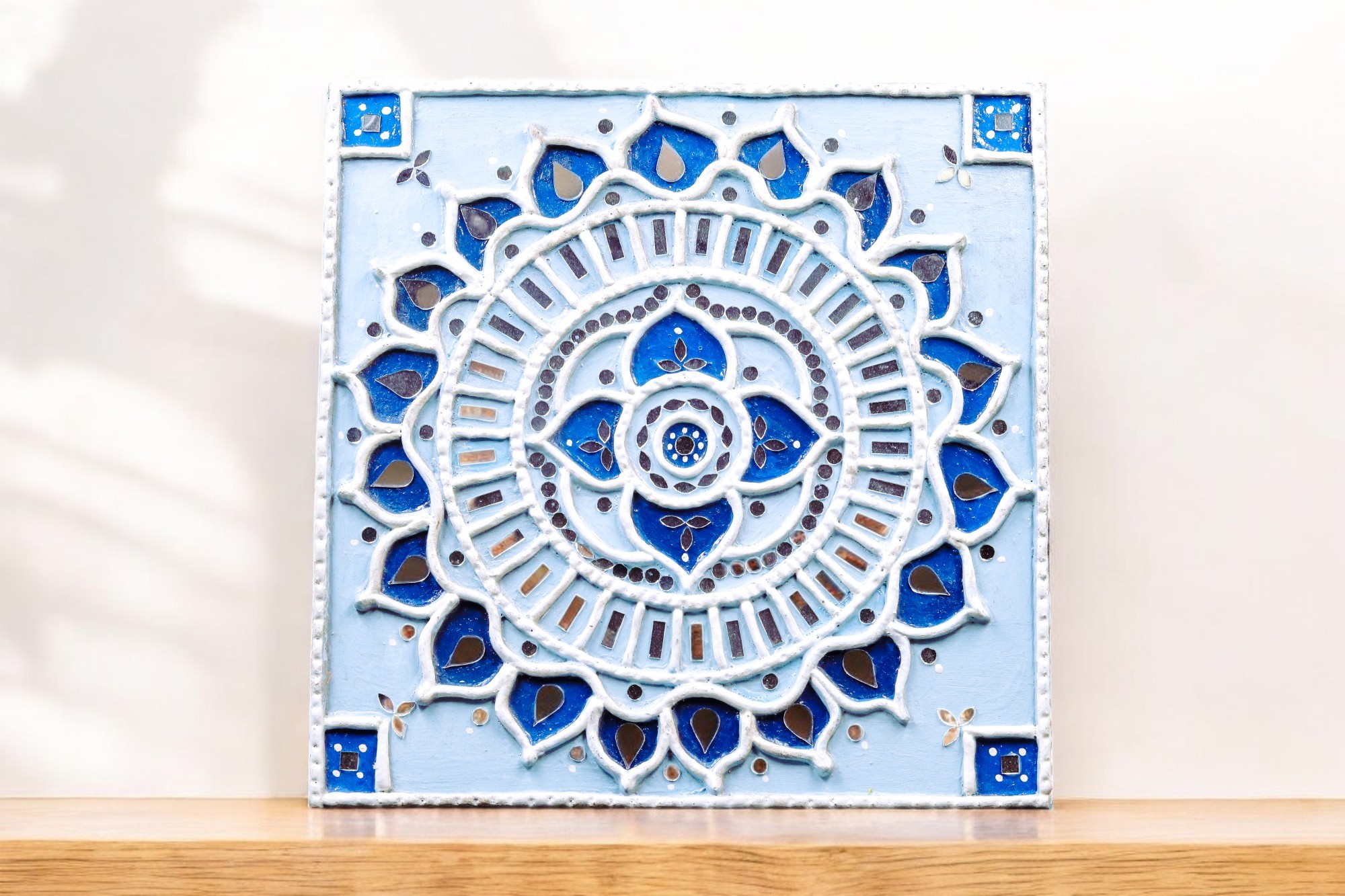 Lippan art is a traditional art form of Gujarat, India that involves decorating walls with mud, mirrors, and vibrant